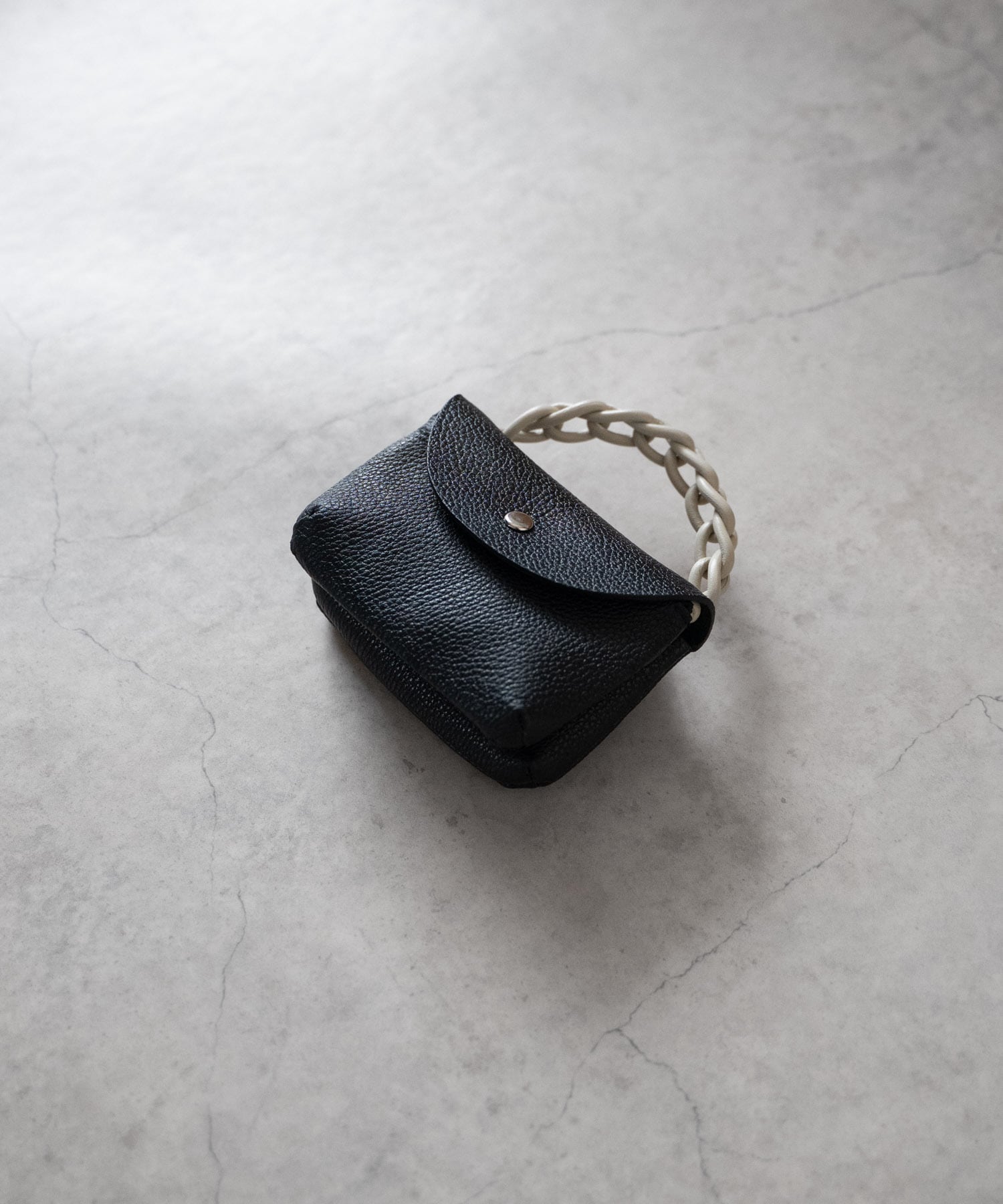 ■レザーコードをチェーン状に編み込んだハンドル部分がアイコニックなミニポーチ