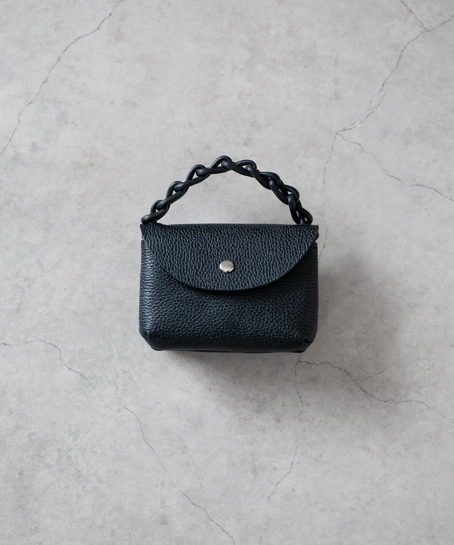 シュリンクレザー チェーンハンドルポーチ #2 BLACK_ブラック