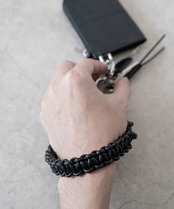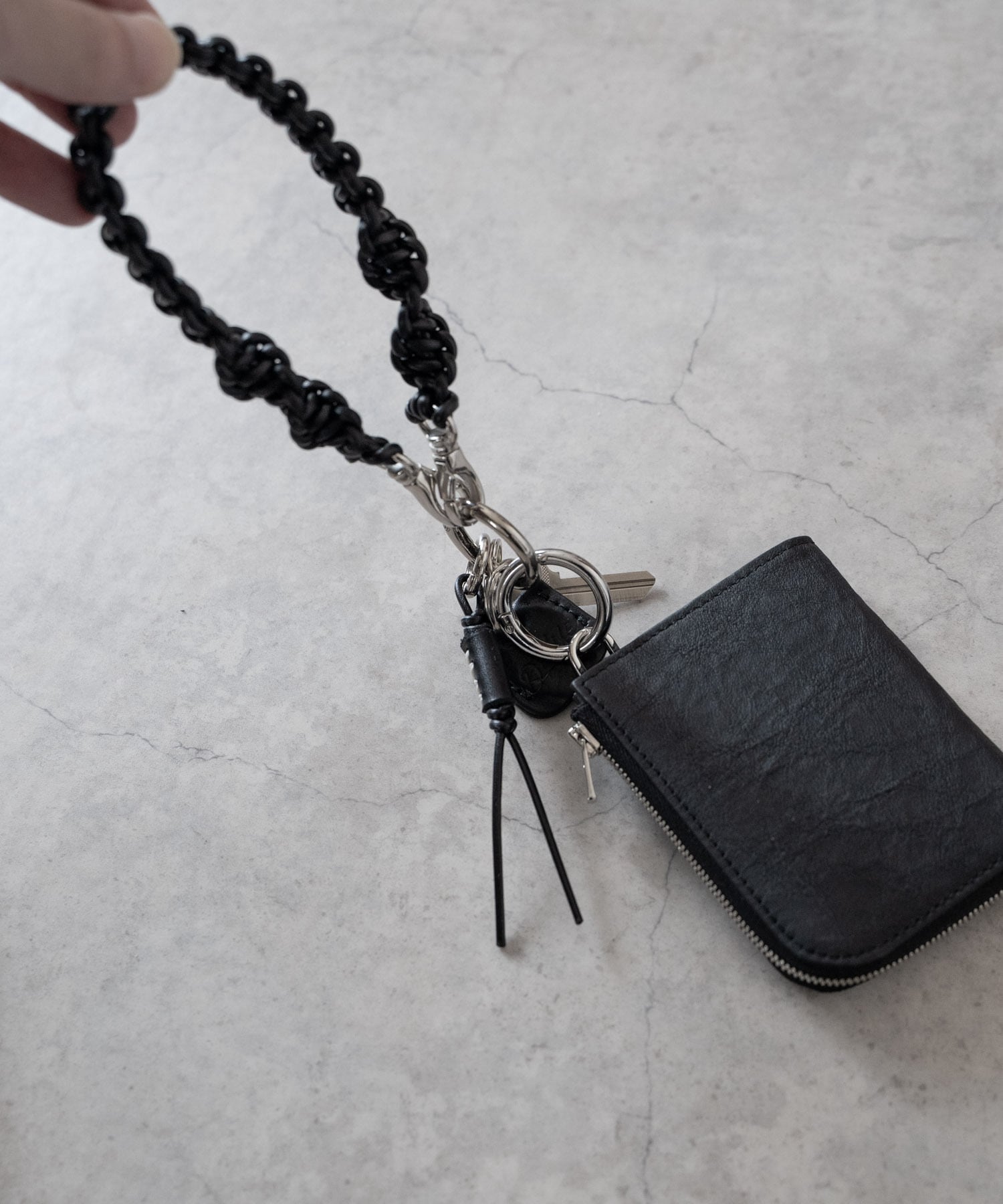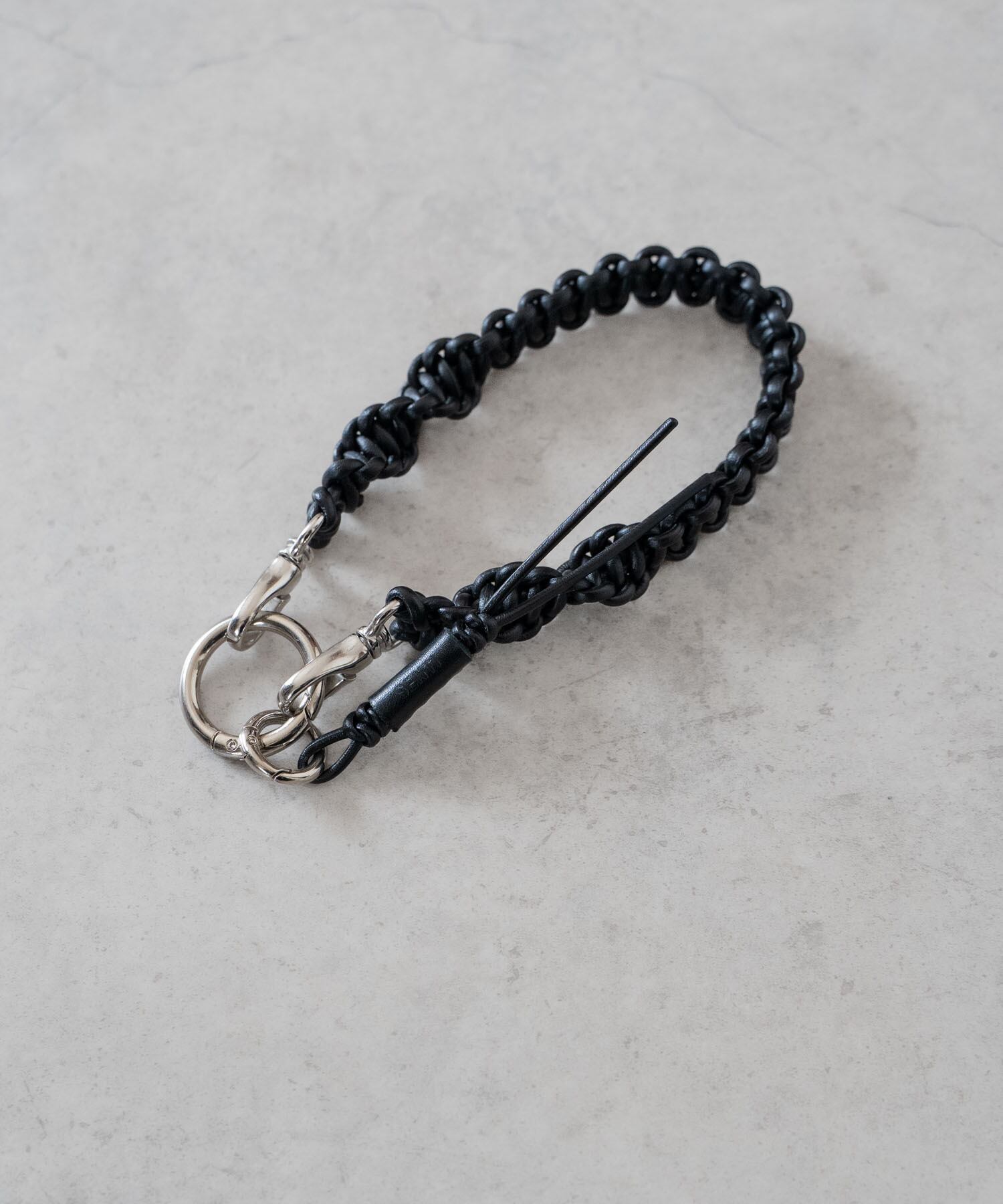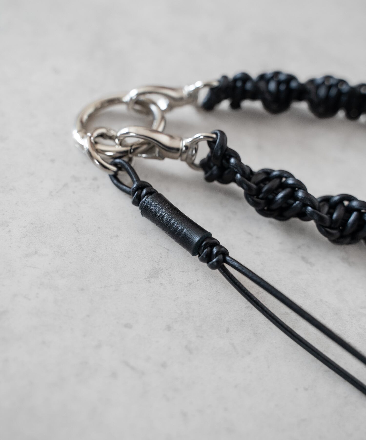 ■しなやかなレザーコードを使用、両端は螺旋状に変化を付けた編み方が特徴のハンドストラップ