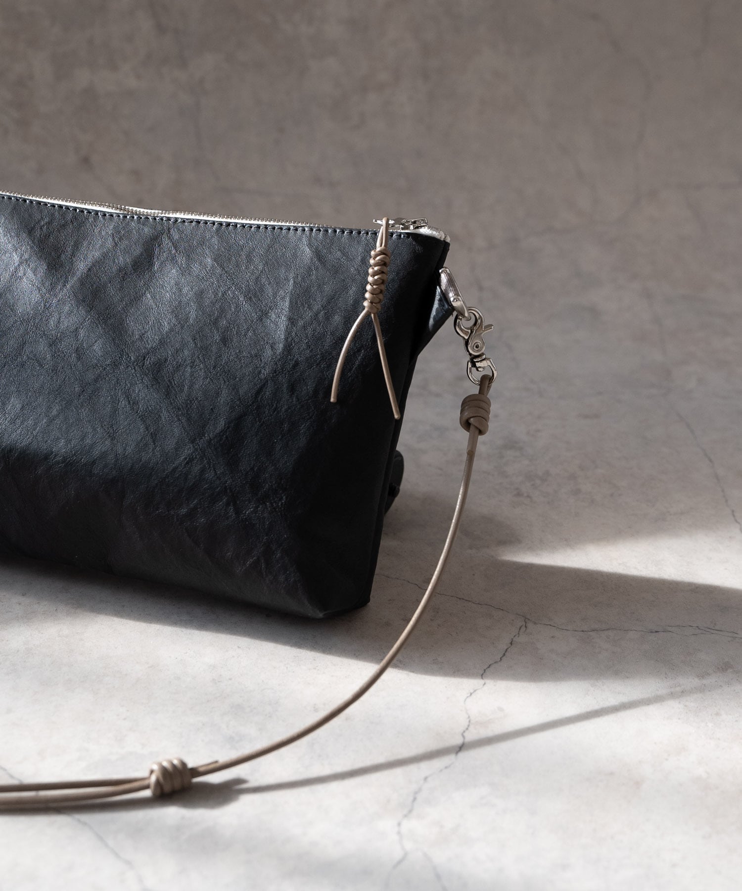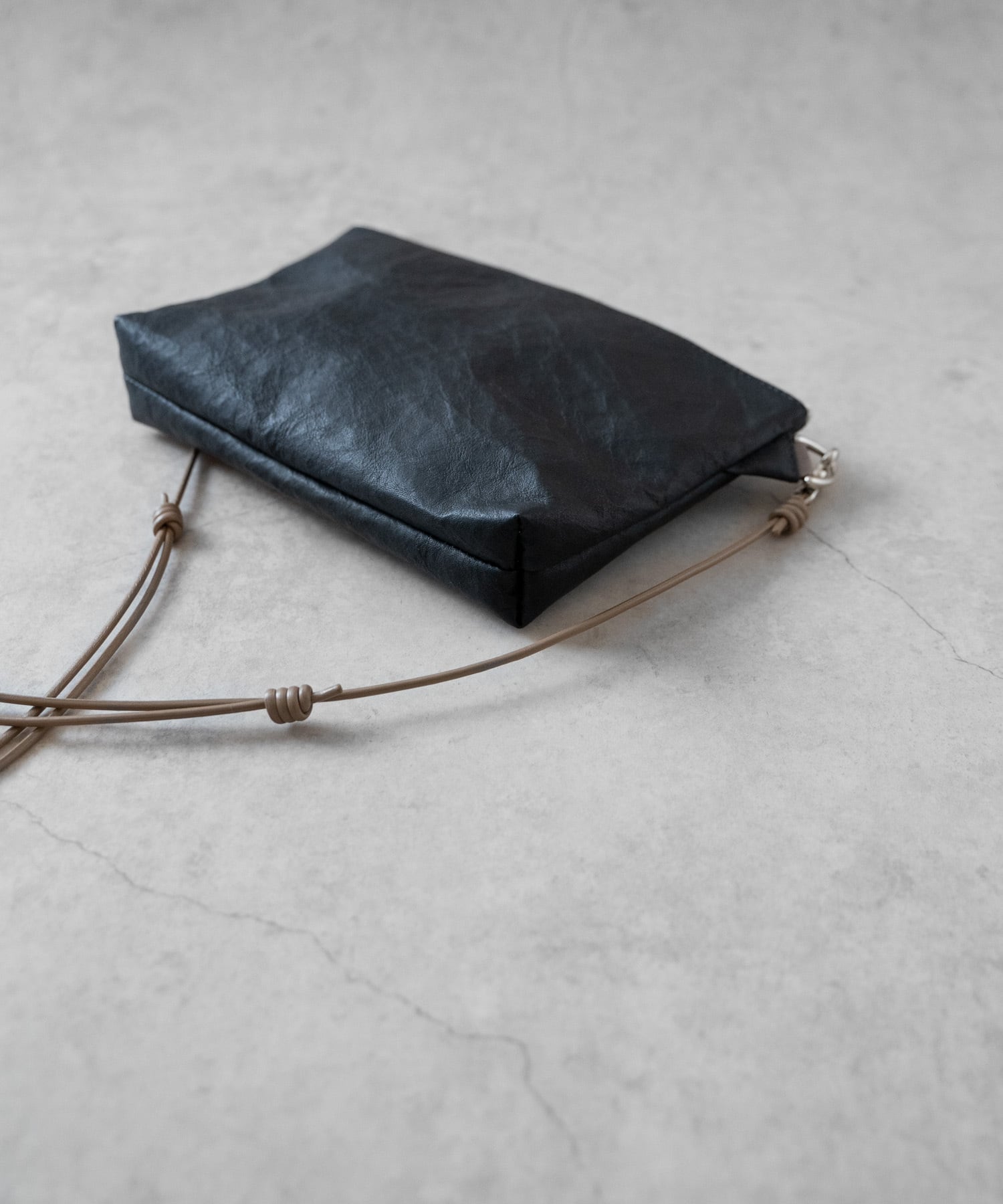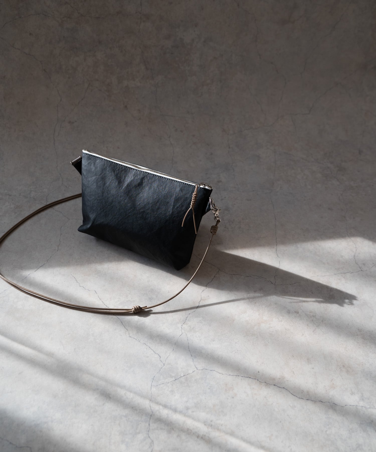 ■シックなスタイルにも合わせやすい、ダイニーマレザーの特長を生かした超軽量レザーサコッシュ