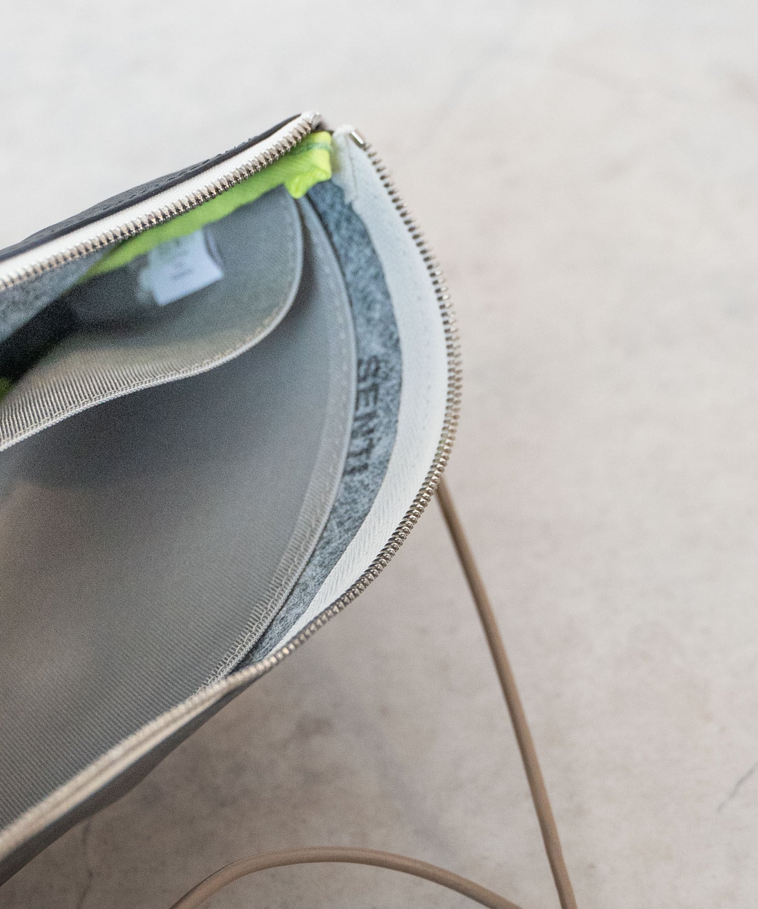 ■ファスナーを開けると中には上半分程度の浅いポケットが配置され、中のものが全て下にたまらないような作りになっています。また非常に取り出しやすく小物類の収納にも便利です