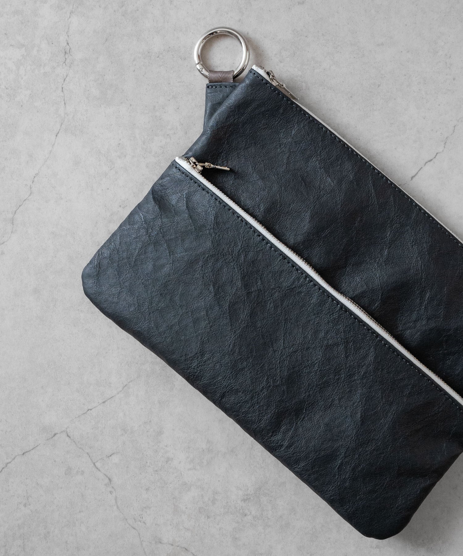 超軽量ダイニーマレザーを使用したダブルジップポーチLL