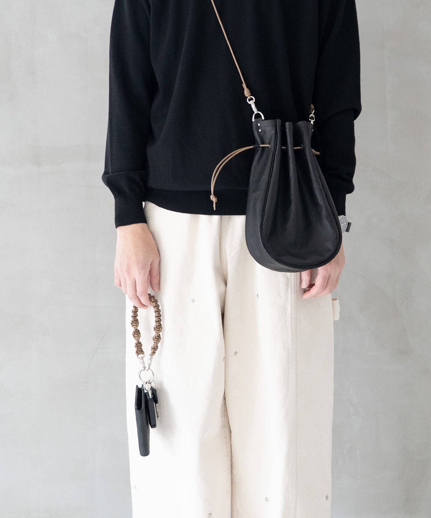 ■ショルダーストラップは長さ調整・取り外しが可能、上にアウター等を羽織ってもわずらわしさを感じさせないしなやかなレザーコードを使用