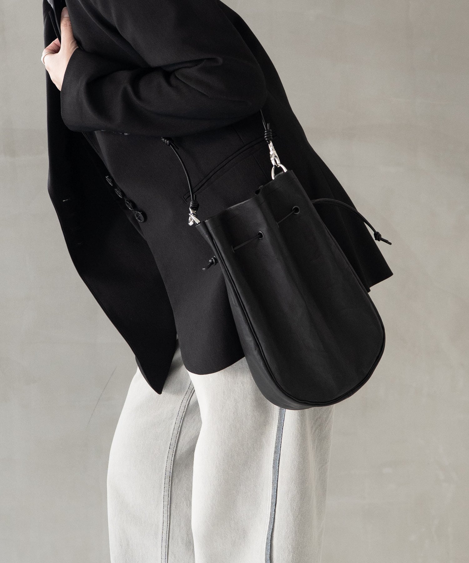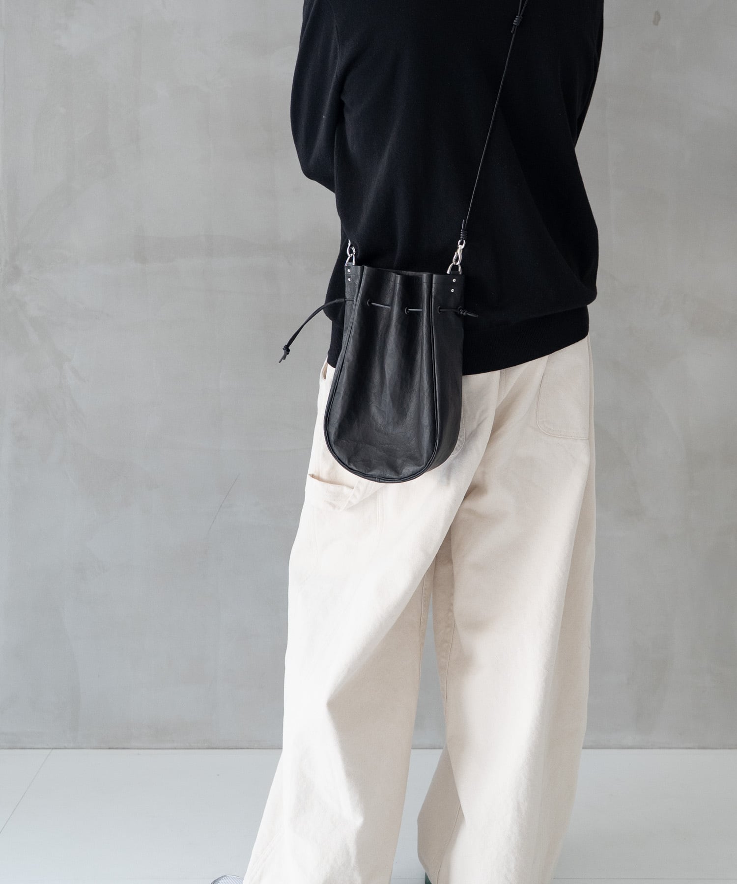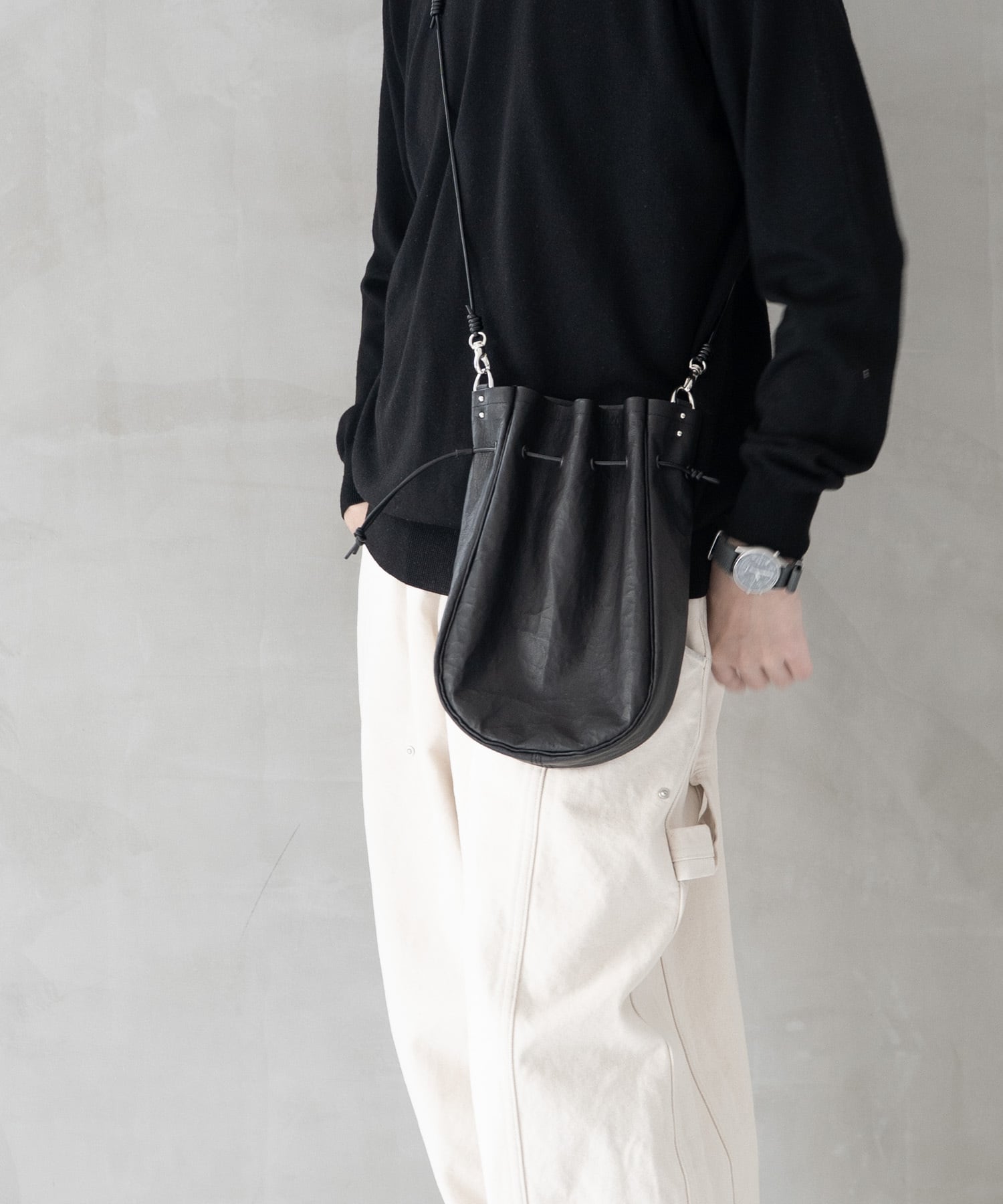 ■ショルダーストラップは長さ調整・取り外しが可能、上にアウター等を羽織ってもわずらわしさを感じさせないしなやかなレザーコードを使用