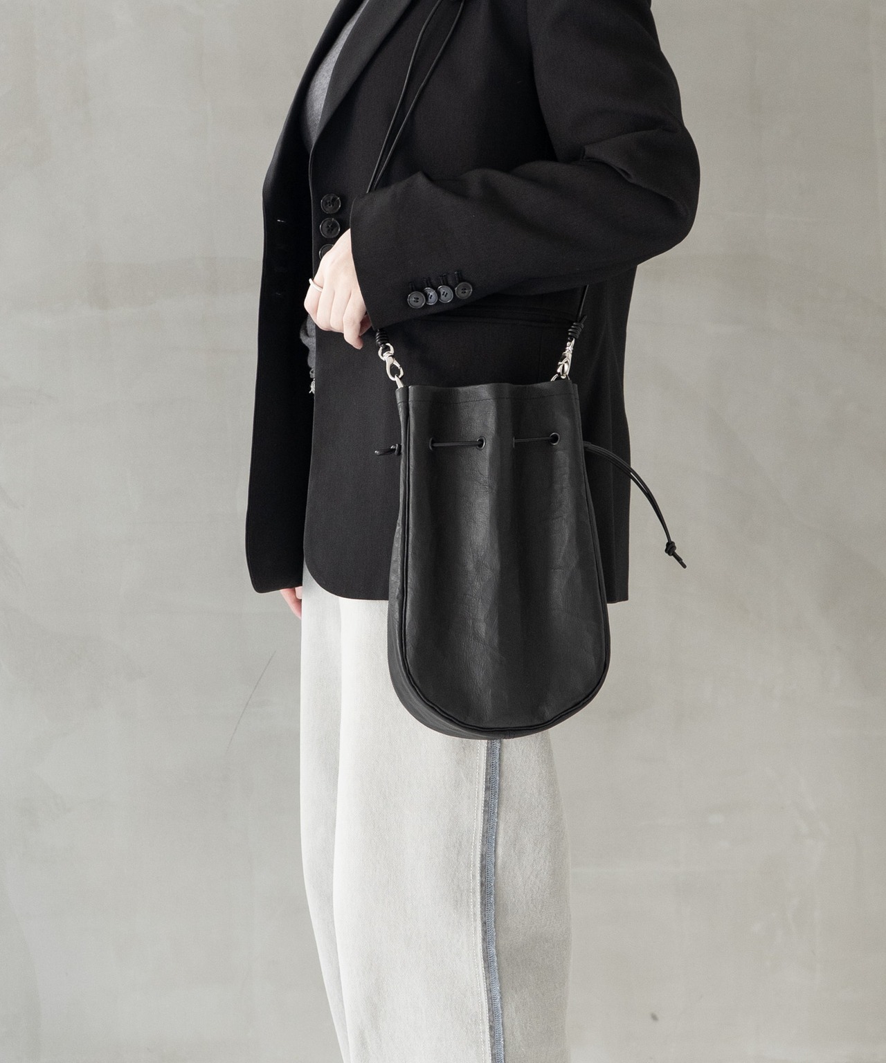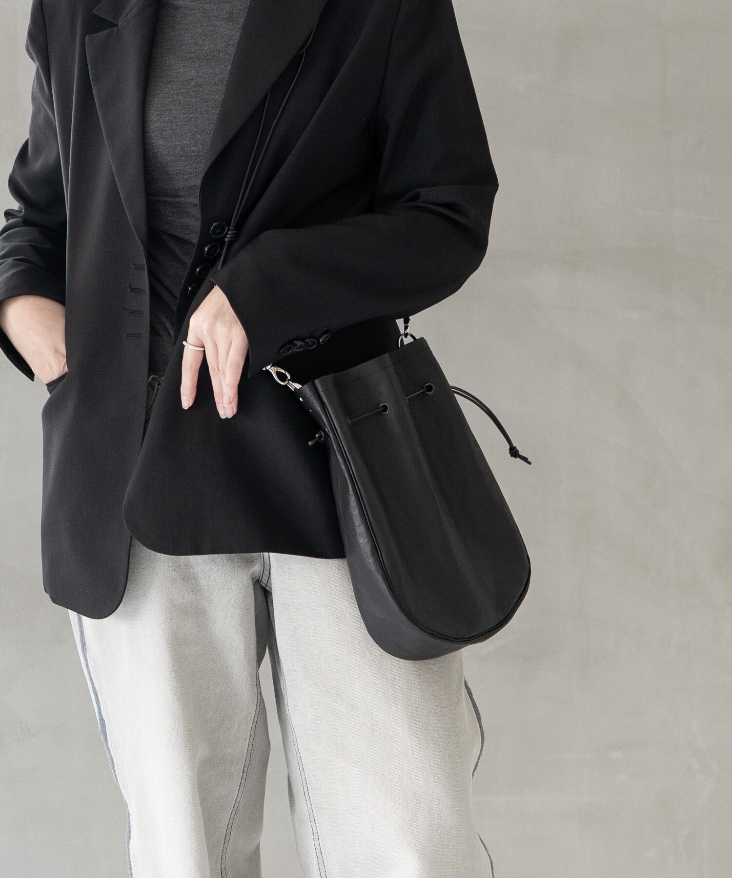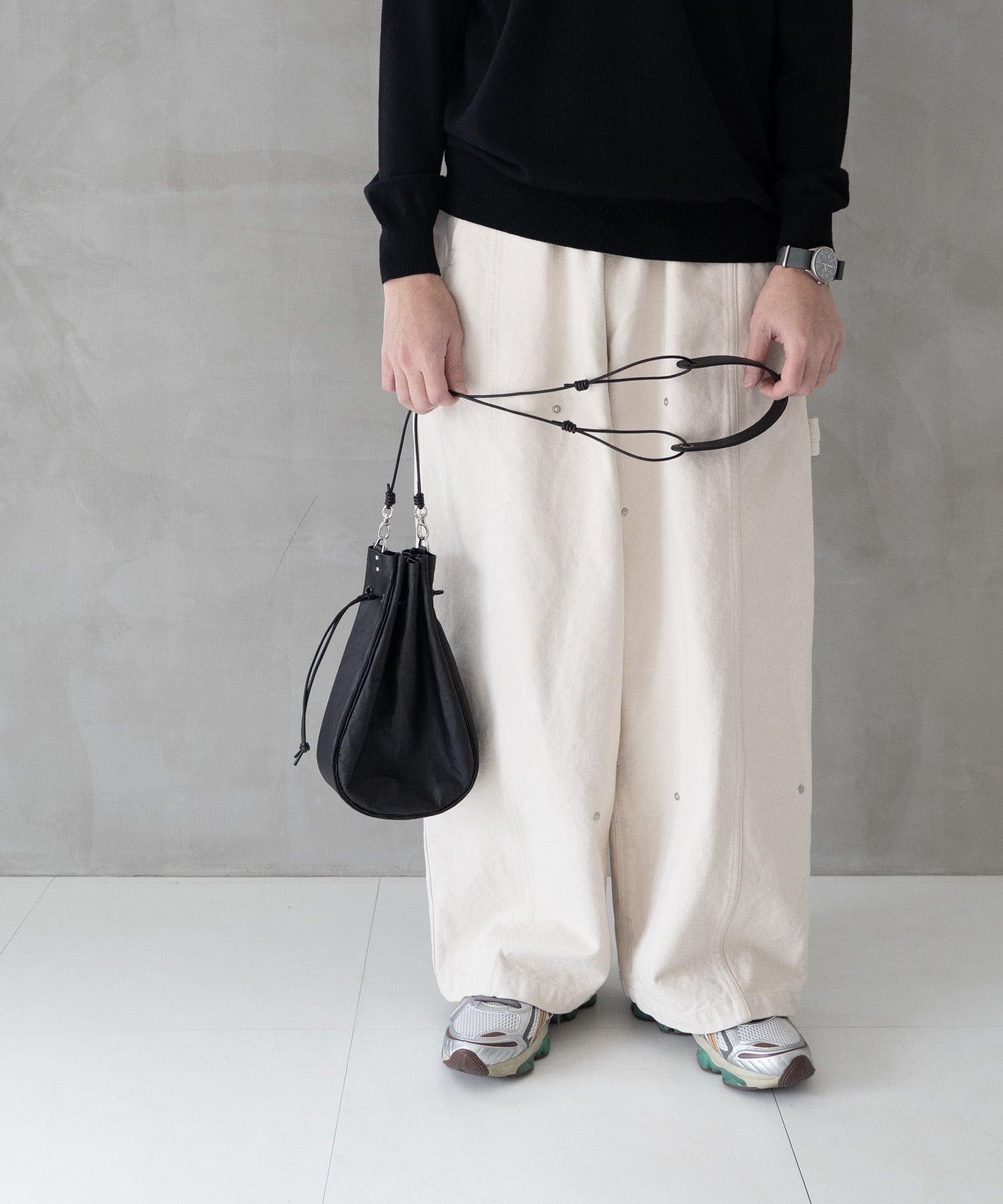 ■ショルダーストラップは長さ調整・取り外しが可能、上にアウター等を羽織ってもわずらわしさを感じさせないしなやかなレザーコードを使用