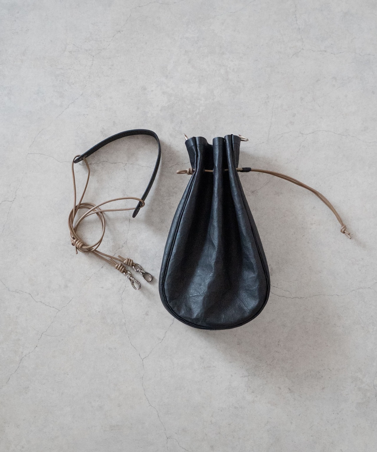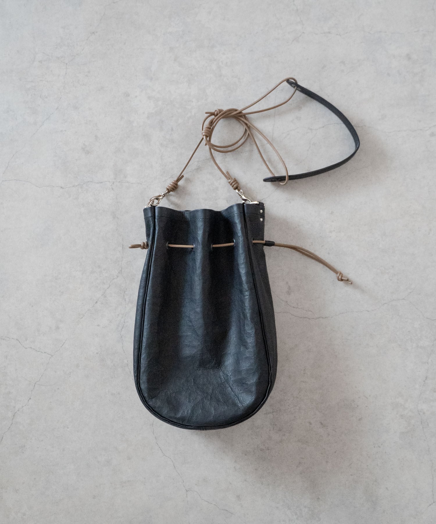 ■ショルダーストラップは長さ調整・取り外しが可能、上にアウター等を羽織ってもわずらわしさを感じさせないしなやかなレザーコードを使用