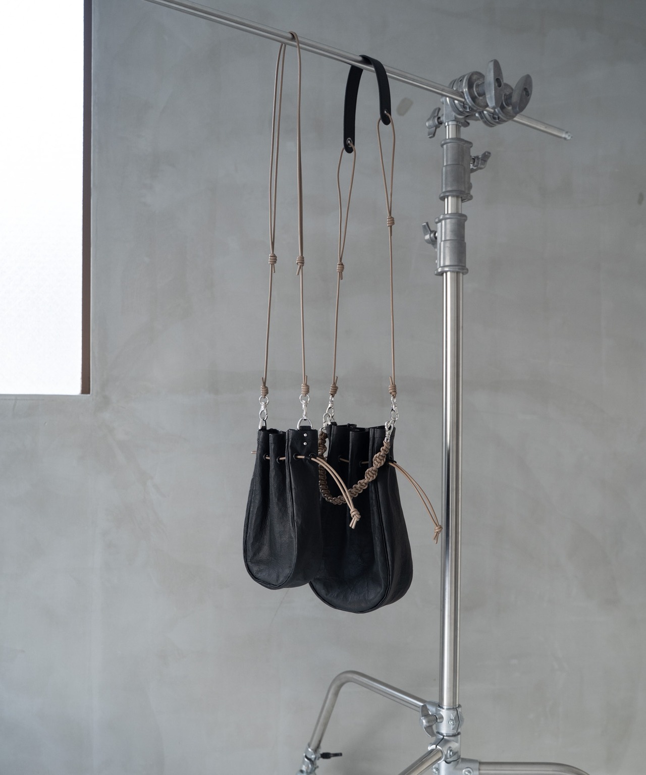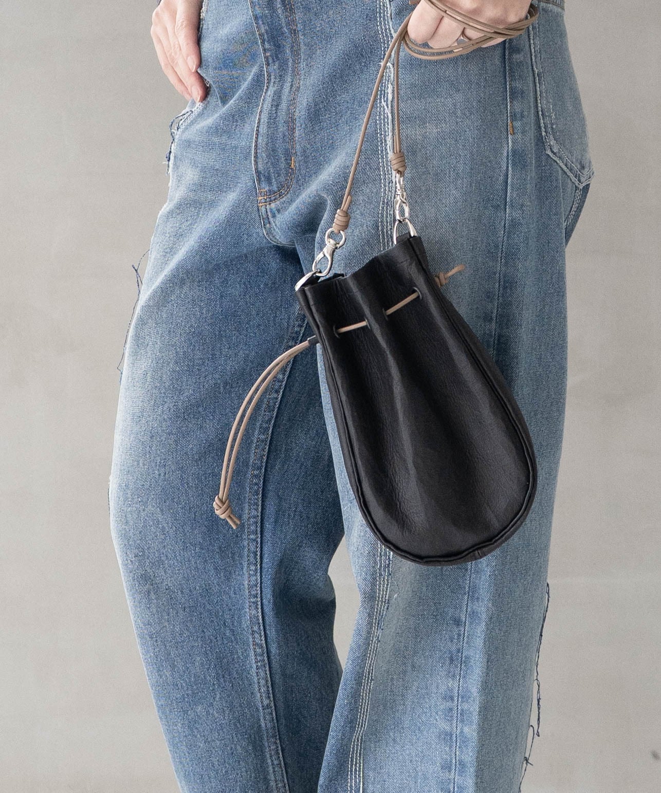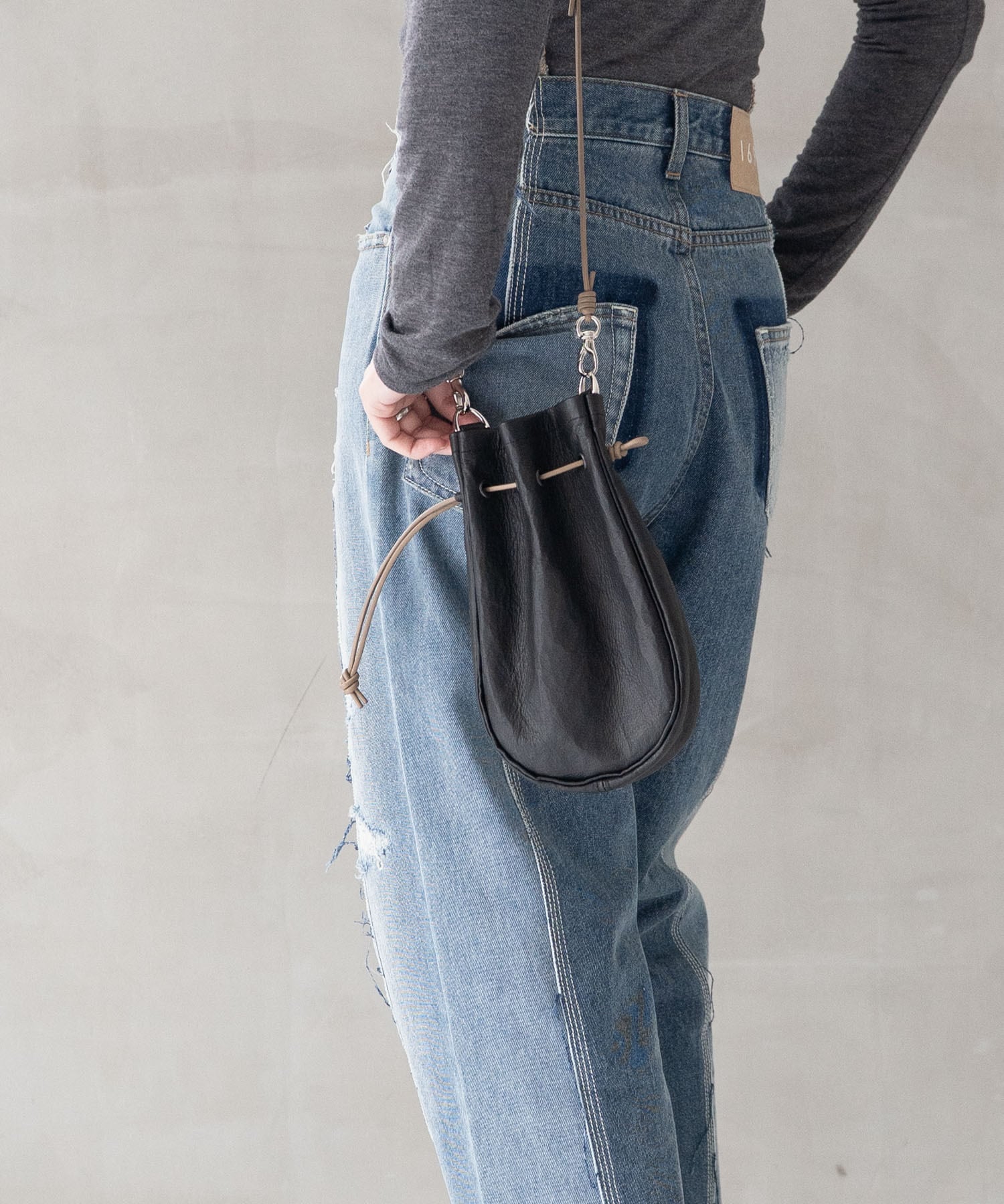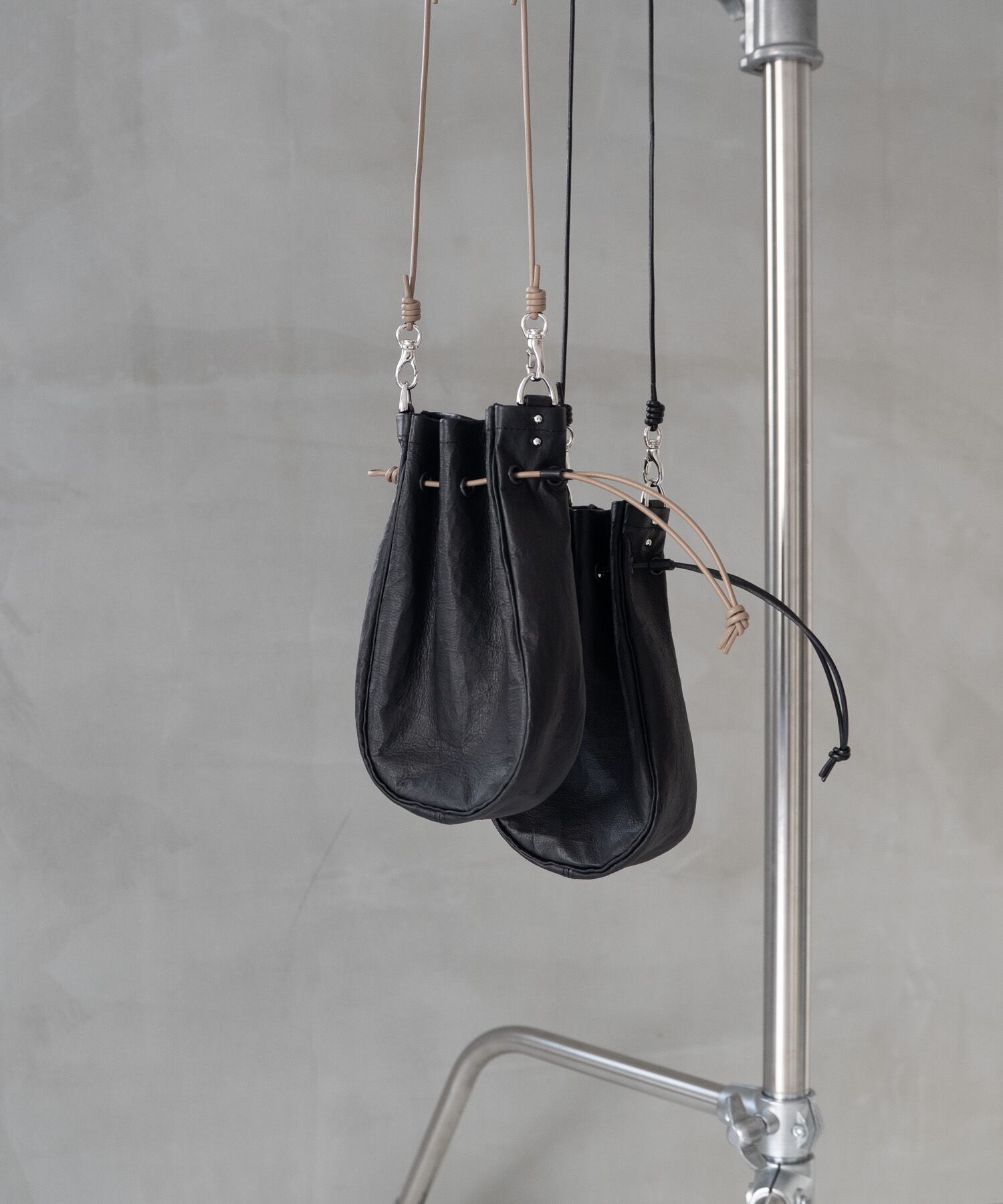 ■ショルダーストラップは長さ調整・取り外しが可能、上にアウター等を羽織ってもわずらわしさを感じさせないしなやかなレザーコードを使用