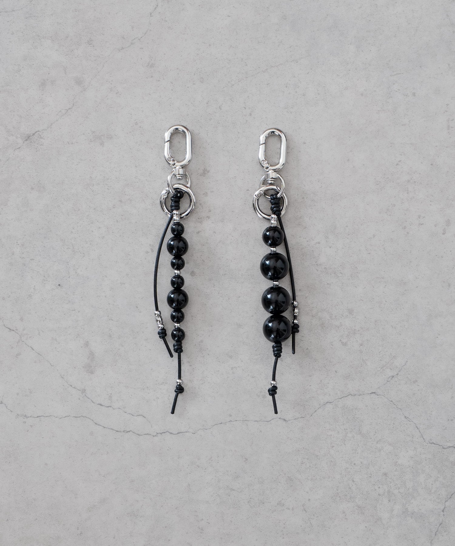 ■アクリルビーズ、シルバーカラービーズを使用した数珠タイプのキー/バッグチャーム