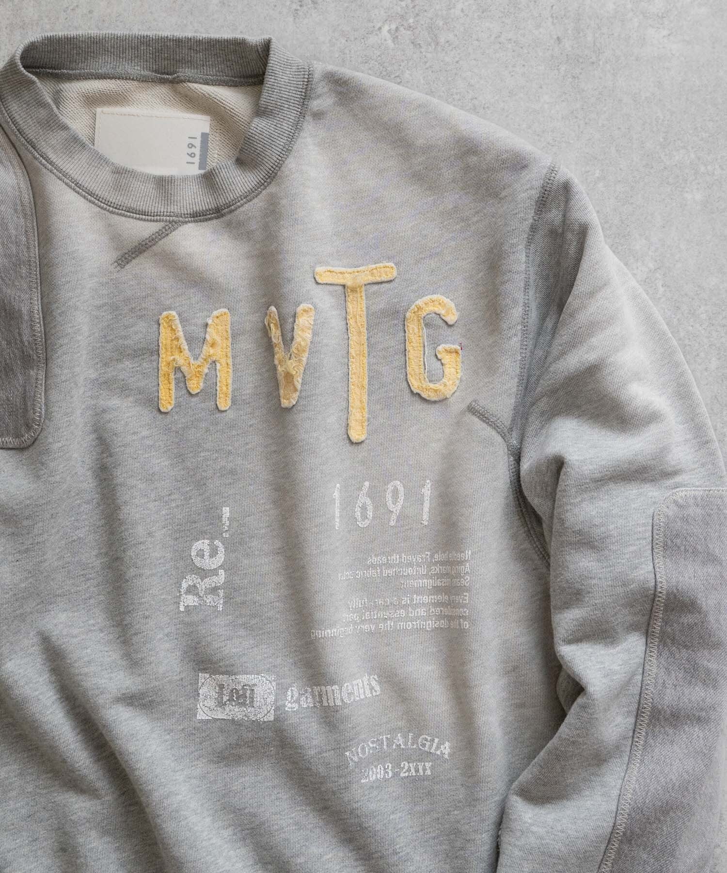 左側の身頃にはワッペン調のロゴ刺繍とプリントを施していますがどちらも着古して朽ちているような加工をしています。