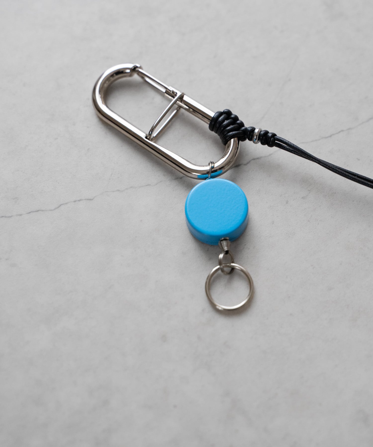 ■安心な2段式のカラビナ(SENTI FTS刻印入り)とカラフルなリールキー仕様のキーリング