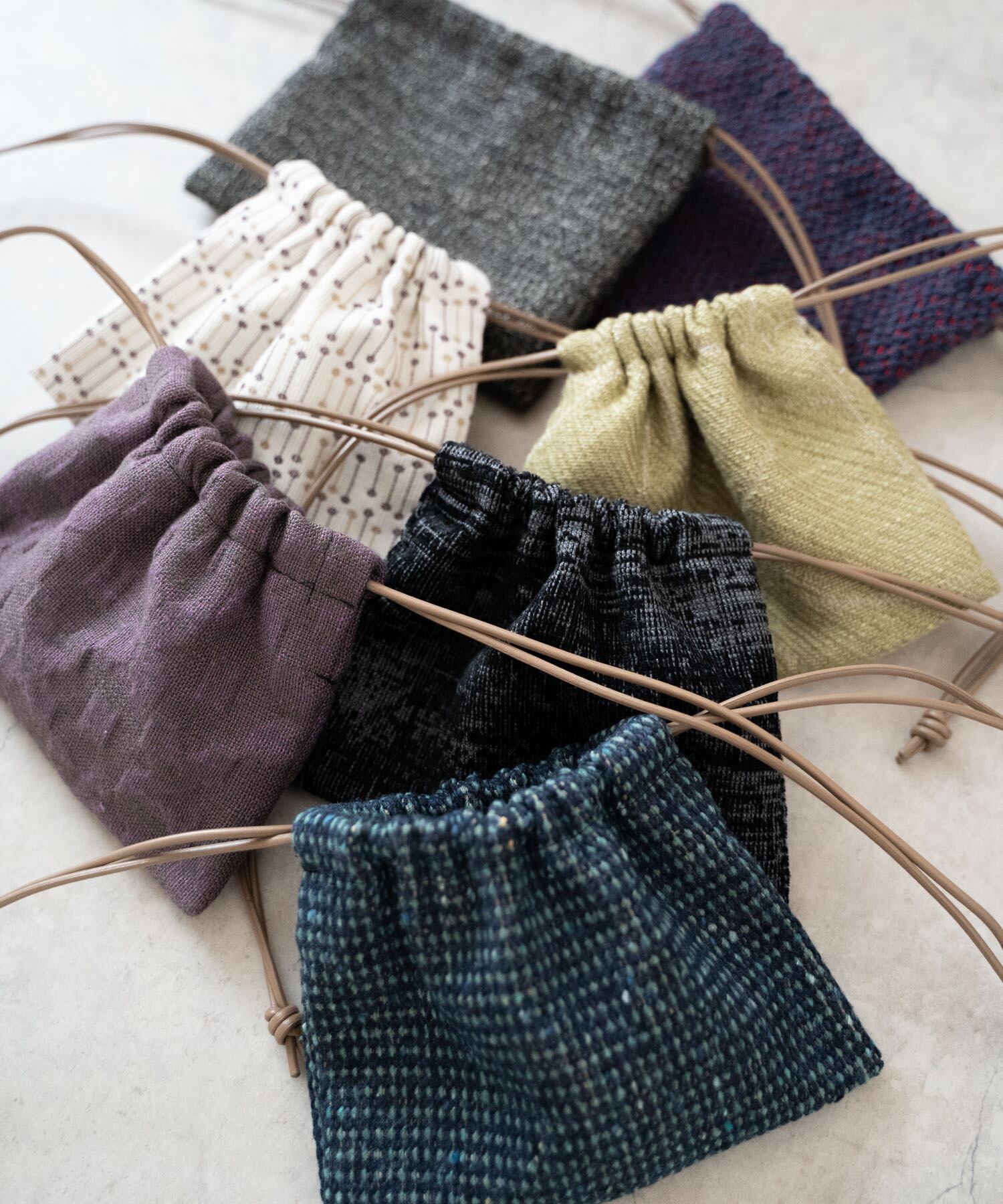 ■Product by dadadaとのコラボレーションアイテム/イタリア製の高級インテリアに使われていたファブリックの一部を使用した、アップサイクルの1点モノ巾着。