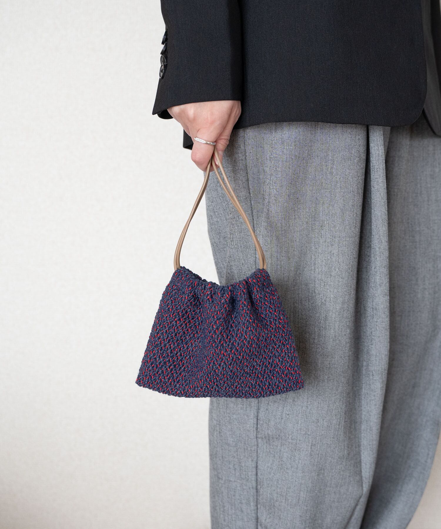 ■Product by dadadaとのコラボレーションアイテム/イタリア製の高級インテリアに使われていたファブリックの一部を使用した、アップサイクルの1点モノ巾着。