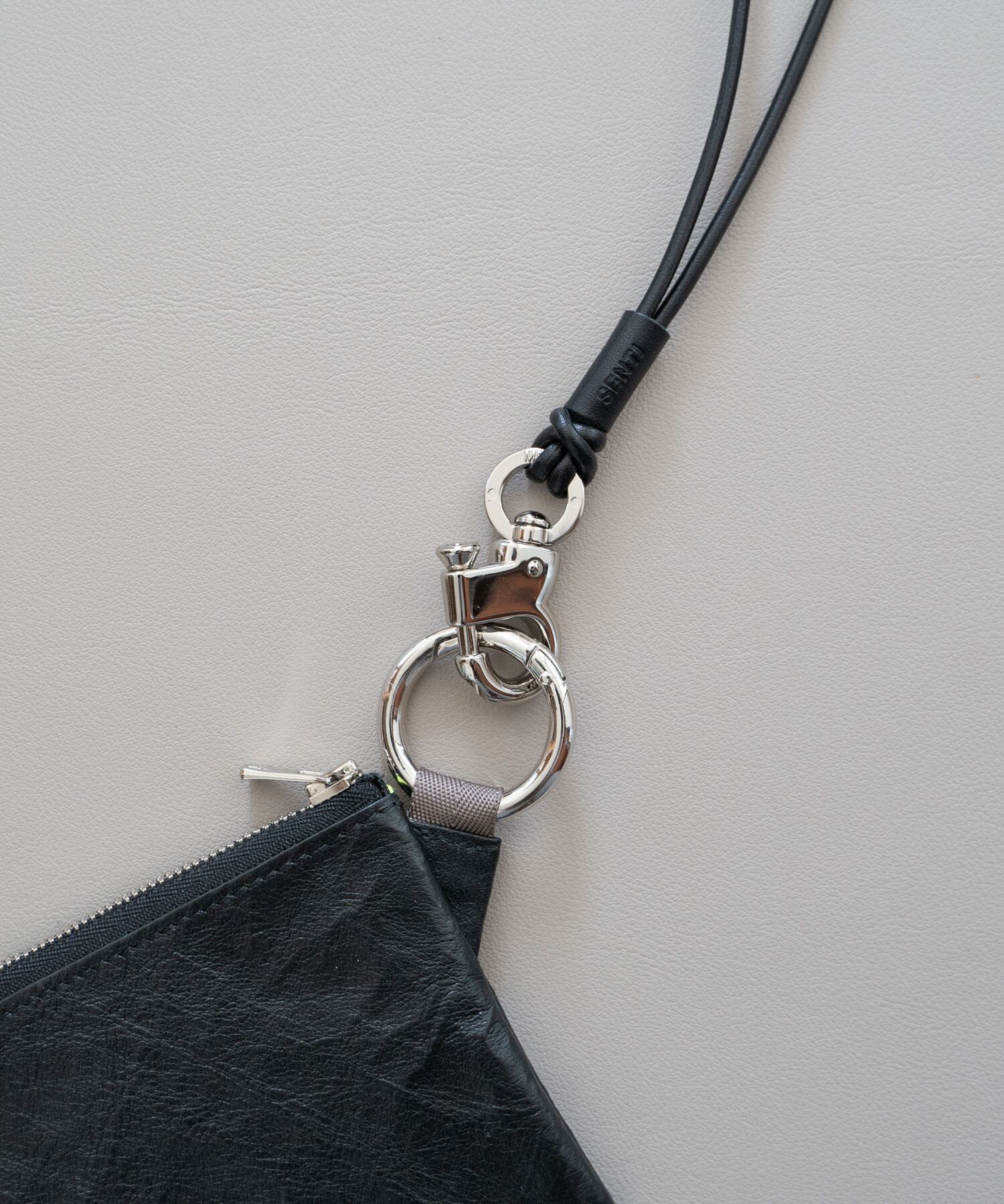 ■しなやかなレザーコードを使用、結び目をスライドさせることで長さ調整可(80cm~最長150cm程度/斜め掛け可能)