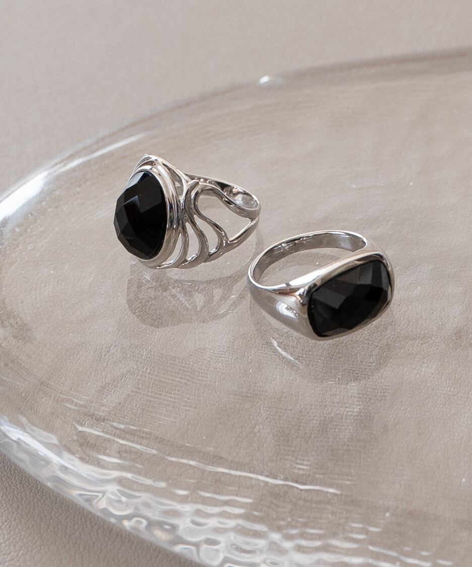 CUT OX SQUARE RING/4505/カットオニキススクエアリング