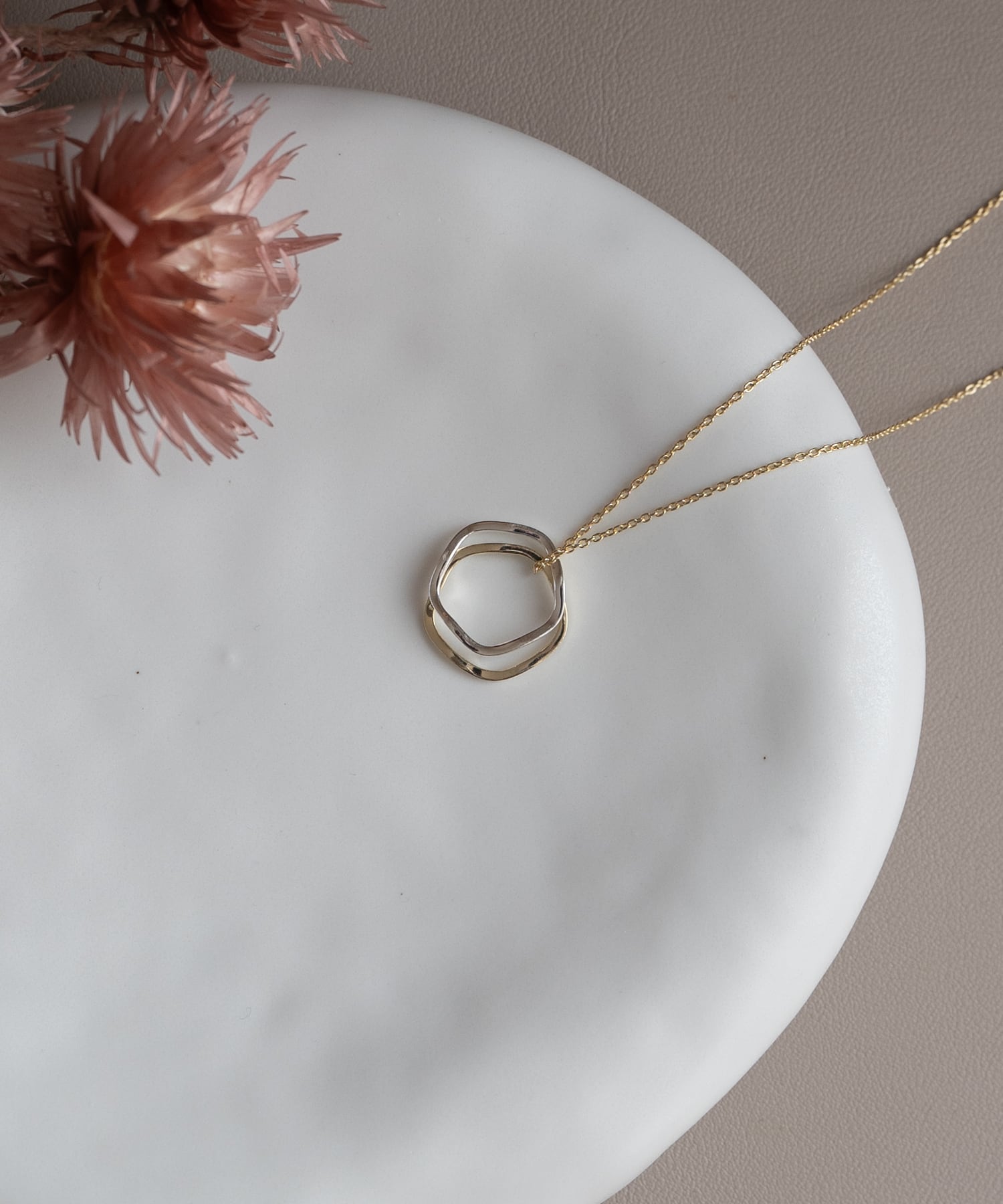■シルバー/ゴールドの華奢な波状のリングとのコンビネーションネックレス